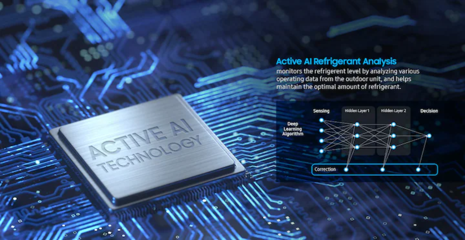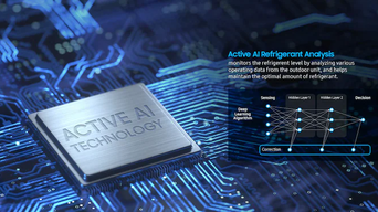 Active AI Refrigerant Analysis überwacht den Kältemittelstand anhand der Betriebsdaten des Außengeräts. Das hilft, die optimale Kältemittelmenge dauerhaft aufrechtzuerhalten und frühzeitig auf Abweichungen zu reagieren.