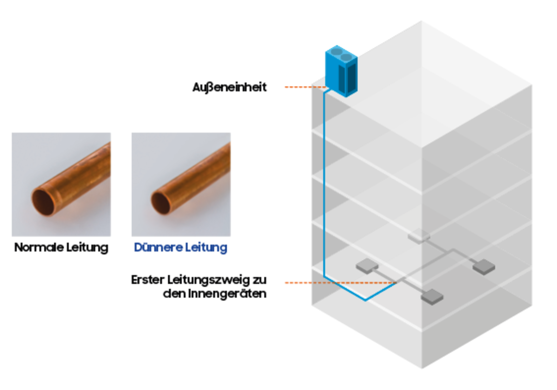 Dünnere Kältemittel-Leitungen, geringere Füllmenge