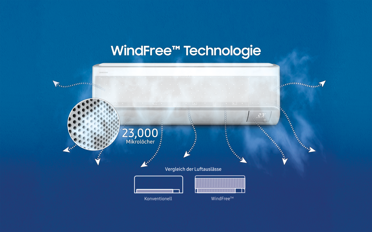 Eine Samsung Klimaanlage kann mehr als nur kühlen. Sie heizt Räume zuverlässig auf und entfeuchten gleichzeitig die Innenluft, wenn das System im Kühlmodus arbeitet. Einige Modelle verfügen zusätzlich über integrierte Filterfunktionen, die die Luftqualität verbessern und Feinstaub oder Allergene reduzieren. So entsteht ganzjähriger Klimakomfort: Im Sommer angenehm kühl und im Winter wohltuend warm.
