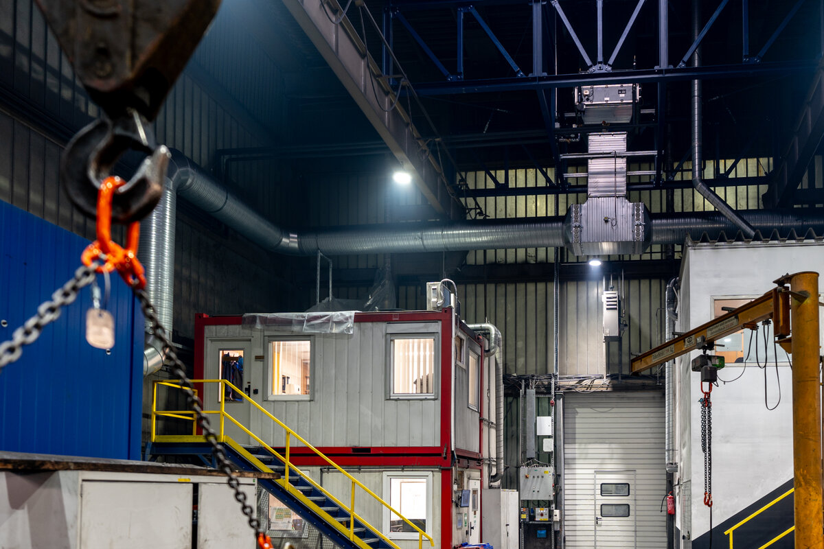 Dank exakter Vorbereitung und professioneller Projektabwicklung stand die Lösung inklusive Testphase innerhalb von nur drei Wochen. Errichtet wurde eine 45 m lange Einhausung mit 1.400 m3 Volumen und einem Luftwechsel von mehr als 50-mal pro Stunde. Diese passte nicht nur präzise in den engen zeitlichen Rahmen, sondern auch in die bestehende Gebäudestruktur.