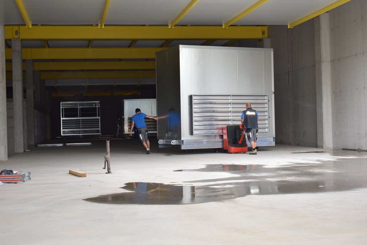 | 1 Gerät | Anlage Produktion Zuluft & Abluft 16.000 m³/h Doppelplattenwärmetauscher, Kühl- und Heizregister, Innenaufstellung – Kubenmontage |