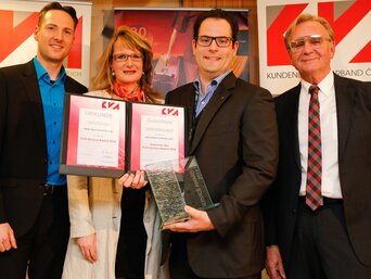 Zum 14. Mal hat der Kundendienst-Verband Österreich (KVA) den Service Award im Rahmen des KVA Service Kongresses verliehen. Diese besondere Auszeichnung wird an Unternehmen mit hervorragendem Service- bzw. Kundendienst vergeben. Der Preis wurde an den Kundendienstleiter und Mitglied der Geschäftsleitung, Mag. Robert Grellet, übergeben. Die Kunden bewerten ihre Zufriedenheit bezüglich:
