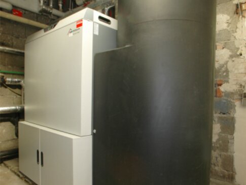 Heizungsanlage: 1 Pellets-Kessel PEO 80 kW, 1 Pellets-Kessel PEO 60 kW