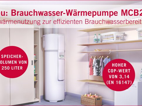 Die Brauchwasser-Wärmepumpe MCB250 überzeugt durch einen besonders hohen COP-Wert von 3,14 (EN 16147).