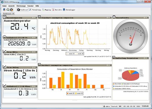 Das Energiecockpit erfasst die Verbrauchsdaten und wertet diese nach der DIN EN ISO 50001 aus. Übersichtliche Grafiken stellen Vergleiche zum Wärmeverbrauch an, geben Auskunft über den tatsächlichen und anteilsmäßigen Verbrauch für die verschiedensten Zeiträume und vieles mehr.