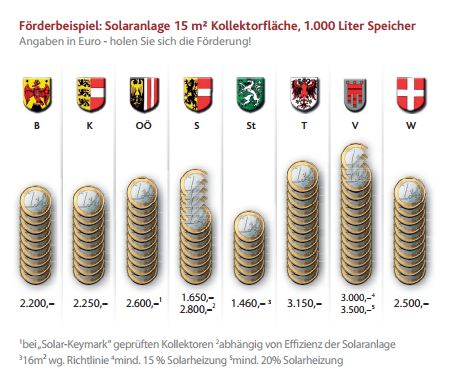 Der Österreichische Biomasse-Verband bringt jährliche eine Übersicht der möglichen Förderungen je Bundesland heraus. Die Förderungen sind sehr unterschiedlich und können bis zu 4.000,- € betragen.