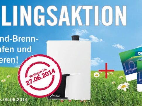 Mit unserer Gas-Frühlingsaktion profitieren Sie nun gleich doppelt. Bis zum 5. Juni 2014 erhalten Sie beim Kauf einer Gas-Brennwert-Zentrale (ANX oder QLX) OMV-Tankgutscheine im Wert von € 100, € 200 (bei zwei Geräten) oder € 300 (beim Kauf von drei Geräten). Mehr über unsere Frühlingsaktion [hier].