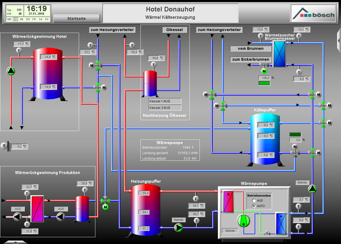 Geplant und realisiert wurde das neue Haustechnik-Konzept gemeinsam mit bösch Partner Ernst Bugl aus Losau. Die bösch Gebäudeautomation wurde perfekt auf die Gegebenheiten angepasst. Für einen besonders energieeffizienten Betrieb gibt es drei Szenarien der Wärmeversorgung: