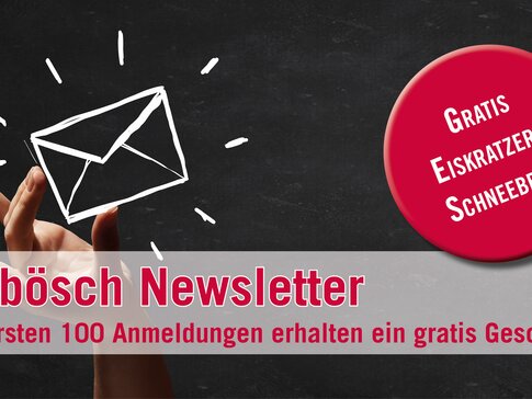 Melden Sie sich noch heute für den mybösch Newsletter an und erhalten Sie immer die aktuellsten Informationen über neue Produkte, Sonderangebote oder Updates. Auf die Schnellsten wartet ein bösch Eiskratzer mit Schneebesen.