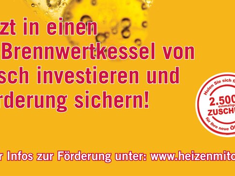 Als Besitzer einer Heizung steht Ihnen das neue Förderprogramm zur Verfügung. Wenn Sie auf ein modernes Öl-Brennwertgerät umsteigen, unterstützt Sie die „Heizen mit Öl GmbH“ mit einer einmaligen, nicht rückzahlbaren Förderung in der Höhe von