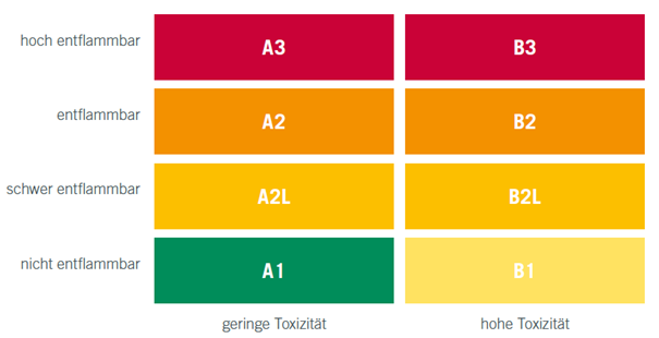 Kältemittel werden hinsichtlich ihrer Brennbarkeit und Toxizität klassifiziert. Diese Klassifizierung ist entscheidend für die Sicherheitsbewertung und den Einsatz in verschiedenen Kälte- und Klimaanwendungen.