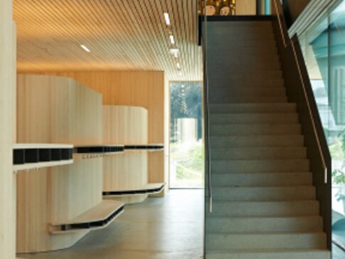 Besonderes Augenmerk fällt auf die Einzelraumregelung von bösch, welche alle Räume mittels DDC-Regelung über 96 Datenpunkte steuert. Zudem wurde eine Aufschaltung an die Gebäudeleitstation der Gemeinde Lustenau vorgenommen. Dies gewährleistet eine jederzeit angenehme Temperatur z. B. auch nach Ferienende.