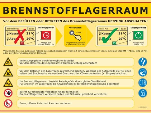 Luftdichte Lager dürfen nicht betreten werden. Von diesen geht die größte Gefahr aus. Betreten dürfen diese nur eingewiesenes Fachpersonal nach ausreichender Belüftung. Bei diesen Lagern sollte eine Belüftung angedacht werden, z.B. durch belüftete Pellets-Befüllkupplungen, ein Hinweisschild ist anbringen.