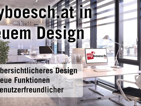 Seit gestern (22.04.) präsentiert sich myboesch.at im neuen Design. Das moderne, ansprechende, übersichtliche und benutzerfreundliche Design soll die Benutzung von myboesch.at noch angenehmer und effizienter machen.