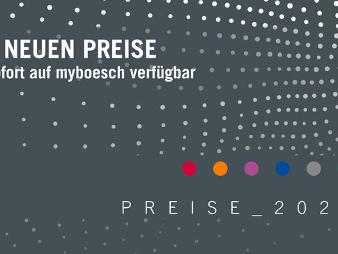Die neuen Preise sind ab 1. April 2023 gültig und gelten für alle Bestellungen ab diesem Datum. Erstmals stellen wir die Preisliste nur noch digital auf www.myboesch.at bereit.
