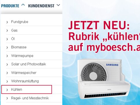 Auf www.myboesch.at ist nun die neue Produktsparte "kühlen" angelegt. Überzeugen Sie sich von unserem energieeffizienten Kliima-Split-System Etesia Eco.