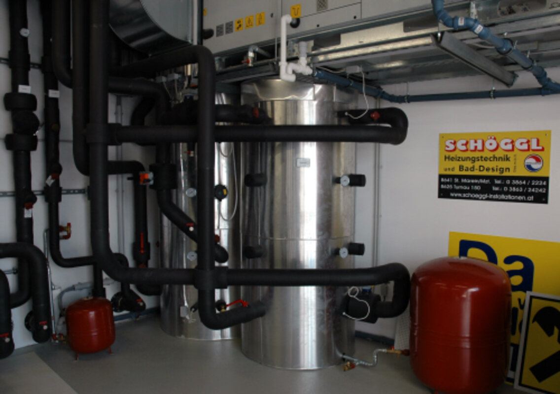 Für ein angenehmes Arbeitsklima im neuen Gebäude der Steirischen Raiffeisenbank sorgen die beiden hocheffizienten Luft-/Wasser-Wärmepumpen LA35TUR+ und LA17TU von bösch. Die LA35TUR+ mit einer Heizleistung von 23,6 kW und einer Kühlleistung von 32 kW versorgt das Gebäude nicht nur mit Wärme und Warmwasser, sondern bei Bedarf über die integrierte Kühldecke auch mit kühleren Temperaturen. An dem im Technikraum montierten Wärmepumpen-Manager mit integrierter Wärmemengenzählung wird die berechnete Wärmemenge für Heizen und Warmwasser angezeigt. Die LA35TUR+ ist zusätzlich mit einem reversiblen Kältekreis mit Zusatzwärmetauscher für höhere Warmwassertemperaturen (bis 50° C) im Heizbetrieb ausgestattet. Dieser sorgt auch für eine größere Abwärmenutzung im Kühlbetrieb.
