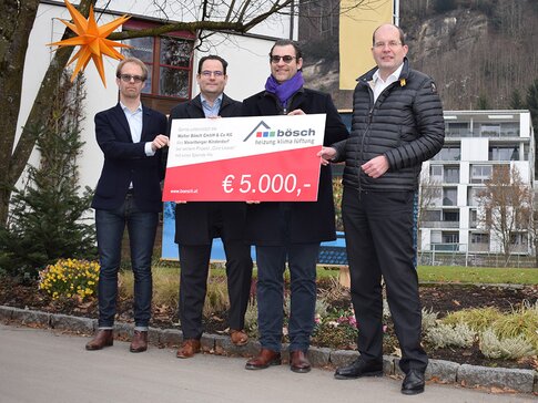 Am 21.12. übergab die Geschäftsleitung von bösch (Mag. Robert Grellet, Dr. Linus Grellet und Dr Robert Janschek) die Spende an Dr. Simon Burtscher-Mathis vom Kinderdorf Vorarlberg.