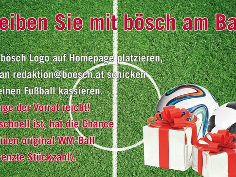 Platzieren Sie jetzt unser bösch Logo auf Ihrer Homepage und wir schenken Ihnen einen Fussball.
